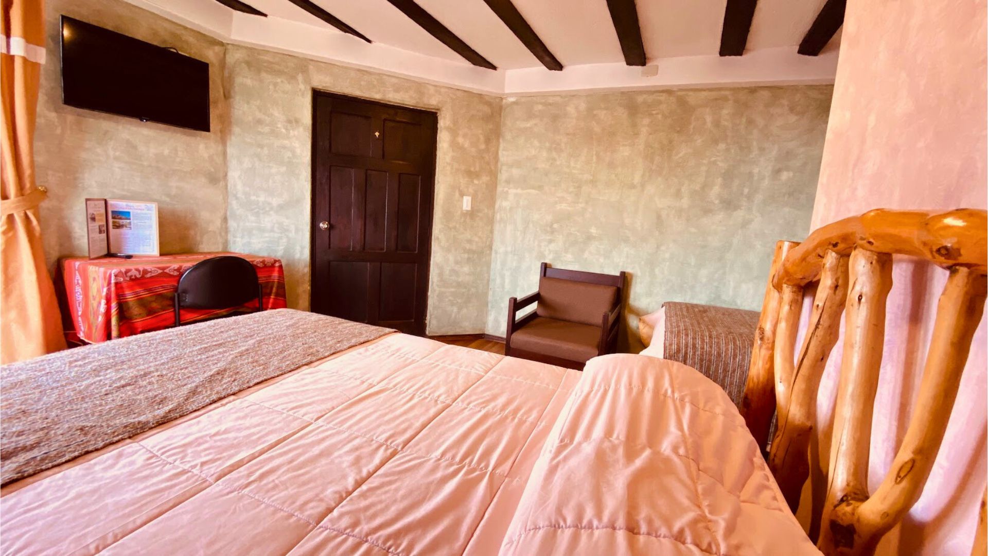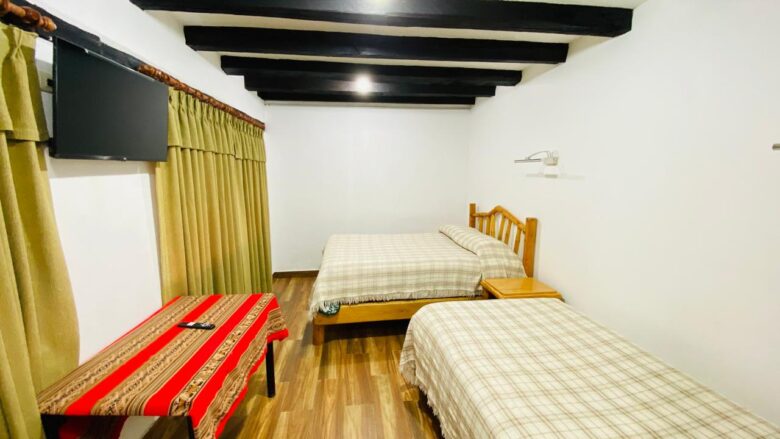 Acogedora habitación doble ubicada en el primer piso, con vista al jardín interior. Ideal para descansar en un ambiente cálido, funcional y accesible. Destaca por su amplitud, iluminación natural y equipamiento completo.