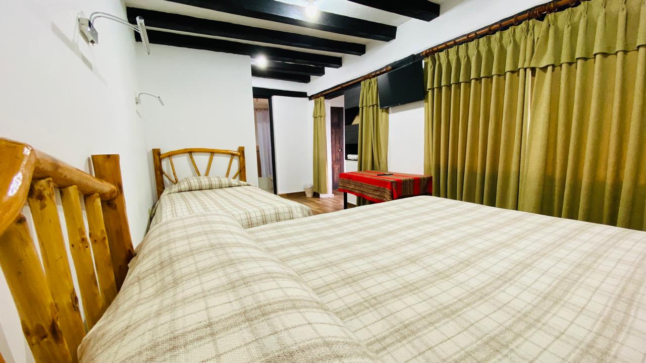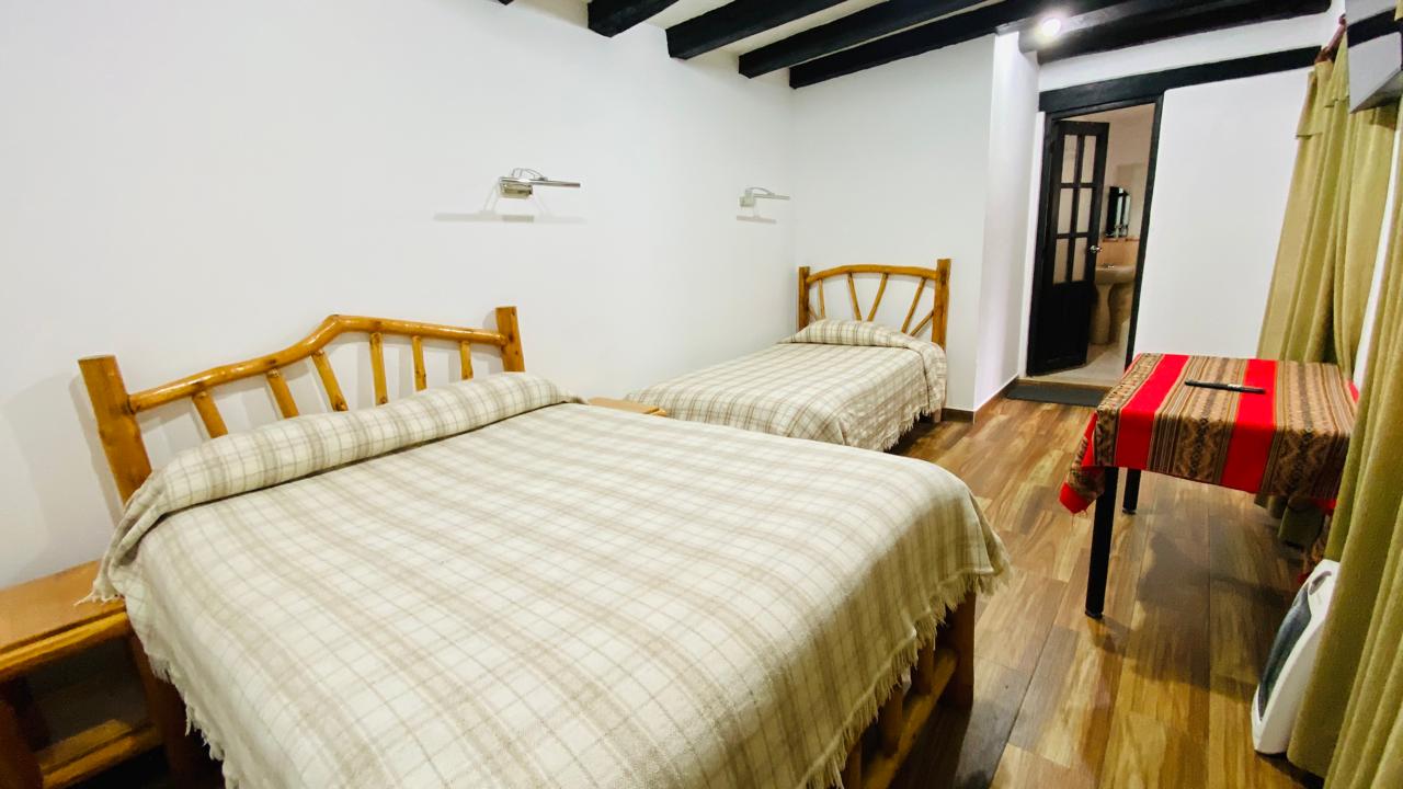 Acogedora habitación doble ubicada en el primer piso, con vista al jardín interior. Ideal para descansar en un ambiente cálido, funcional y accesible. Destaca por su amplitud, iluminación natural y equipamiento completo.