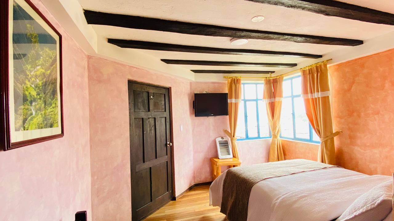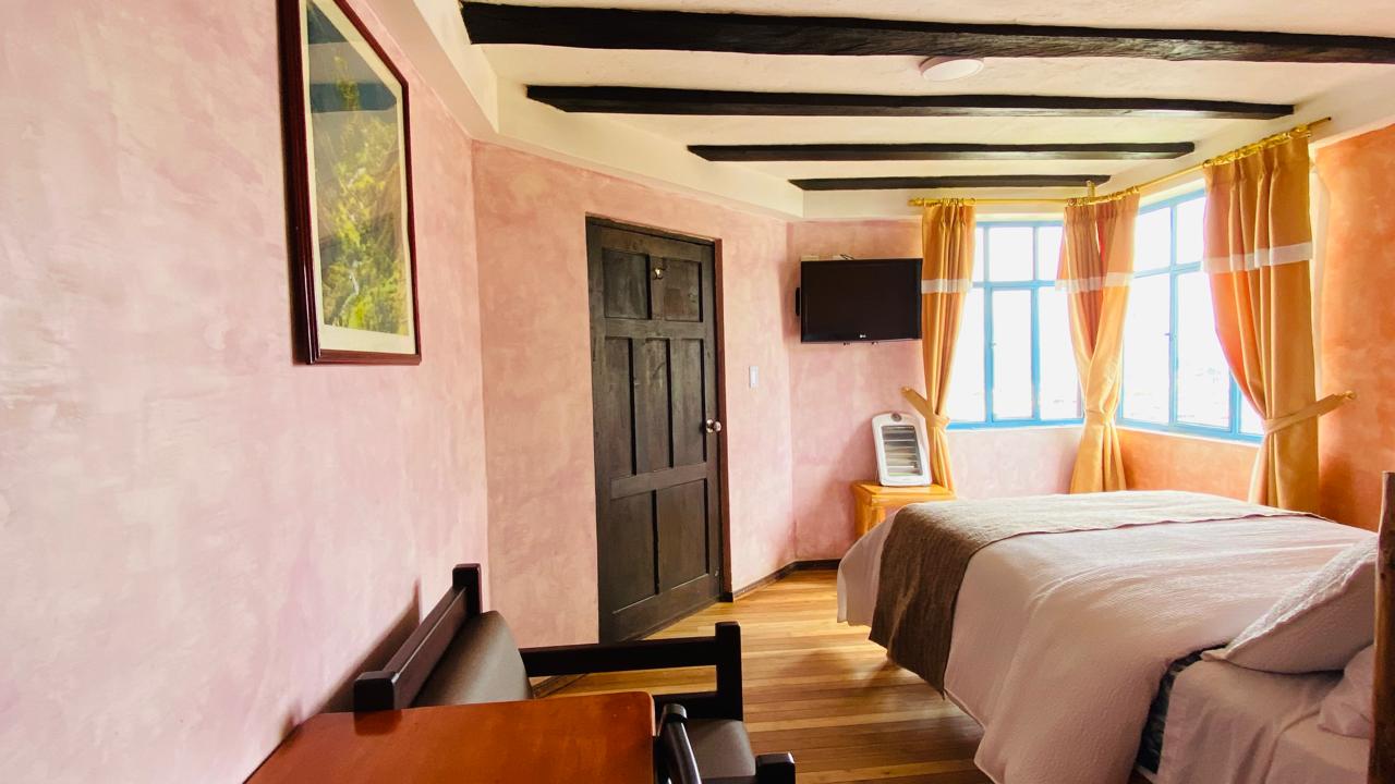 Acogedora habitación doble ubicada en el primer piso, con vista al jardín interior. Ideal para descansar en un ambiente cálido, funcional y accesible. Destaca por su amplitud, iluminación natural y equipamiento completo.